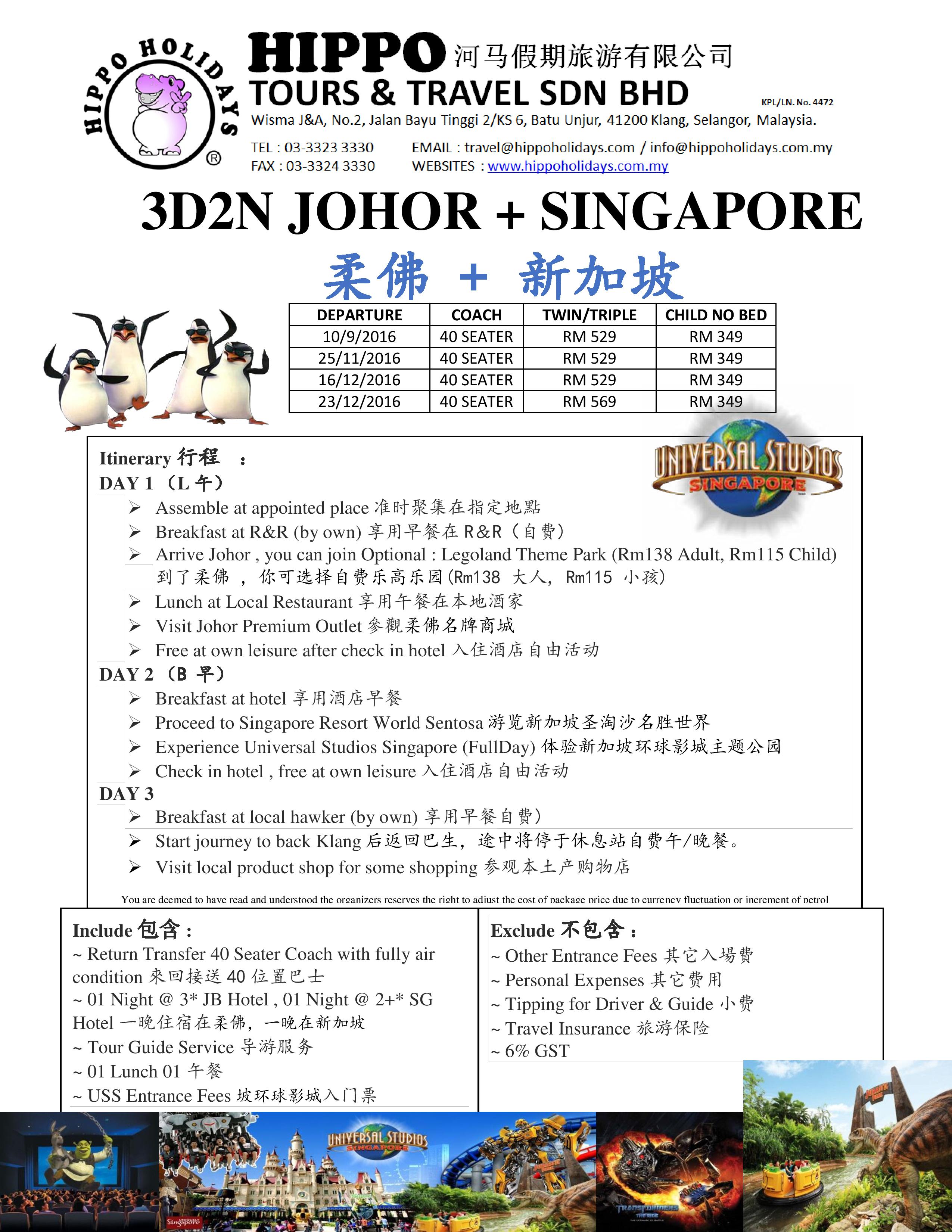 3 DAY 2 NIGHT JOHOR + SINGAPORE UNIVERSAL STUDIO